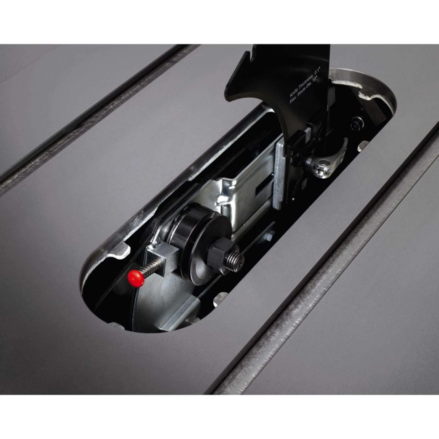 If you’ve ever wondered about what a table saw can really do, look no further. Introducing the new JET 10 in. Deluxe Xacta Saw. The Quick release riving knife and integrated arbor lock keeps the operator safe and more efficient. The Deluxe Xacta Saw offers an upgraded Poly-V belt drive system for smooth operation and optimal power transfer, a fully shrouded blade for highly efficient dust collection. The 26 in. x 30 in. wings and deeper table gives you even more cast iron to work on. A built-in 12.5 in. x 18 in. x 4 in. storage drawer sealed from the cabinet keeps your necessities within arms reach, also includes an on-board fence and miter gauge storage. Heavy-duty chrome plated handwheels contribute to smooth trunnion/arbor movement Quick release riving knife greatly reduces binding/kickback risk Push button arbor lock for rapid blade change Shrouded Blade increases dust collection efficiency Standard 11 in. left and right cast iron extension wings provides the largest table surface in its class Poly-V drive belt system delivers quiet, efficient operation Rail-mounted magnetic switch is easy to reach and provides overload protection Enclosed cabinet with built-in sealed storage drawer Hinged motor cover on cabinet gives quick access to the motor and belts Deluxe miter gauge with adjustable positive stops and large soft grip handles provides large crosscutting capacity and accurate miters
