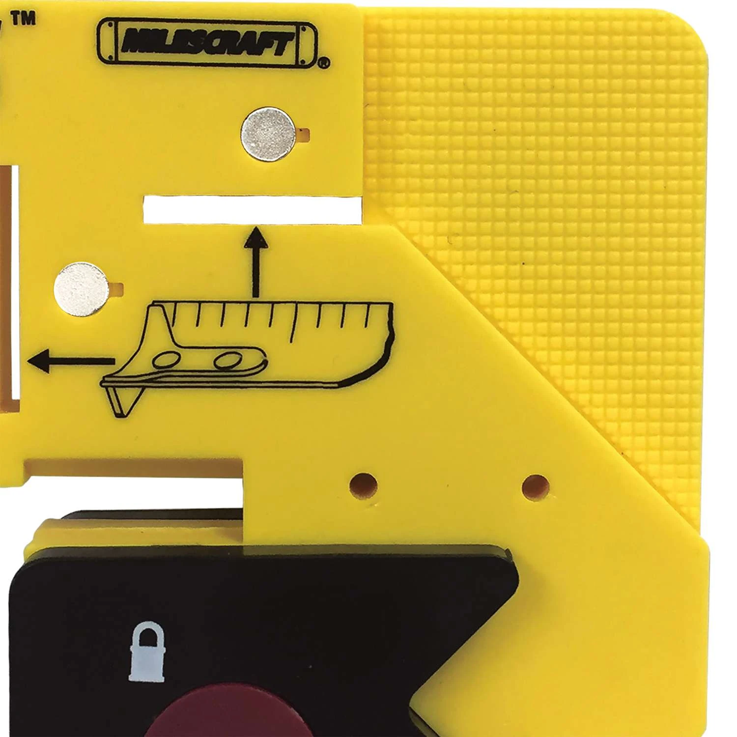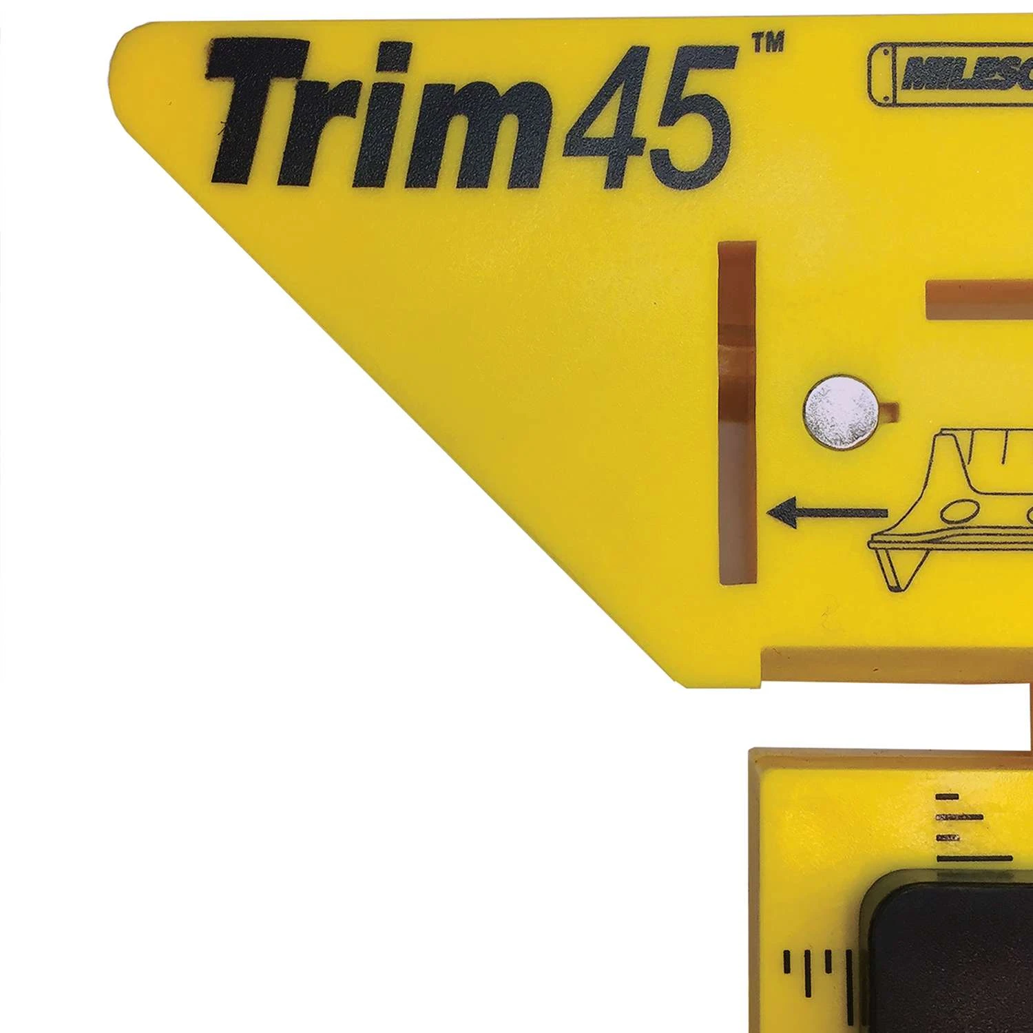 The Milescraft Trim45 trim carpentry aid is the handiest tool in the toolbox when it comes to installing door and window casement trim, as well as decorative trim work projects such as fireplaces or bookshelves. Unique measuring and marking device eliminates fumbling with tape measures when determining the length of finish trim. Unique to the Trim45 is an adjustable reveal setting ranging from 1/8 to 1/2, in 1/8 increments, allowing it to be used on any project in any home or at any job site adding versatility and usability. Tape measure slots and rare earth magnets make it easy to measure jamb openings and trim stock, without the assistance of another person, for perfect miter cuts every time 45 degree angle head for 45 degree marking of miter cuts Built-in clamp pad is designed to work with any clamp With the adjustable reveal you can set reveals Push lock button for securely setting your reveal accurately each time